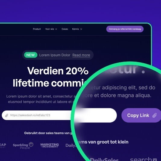 Log in op je SalesDash affiliate account en gebruik je unieke link of voer referrals handmatig in.